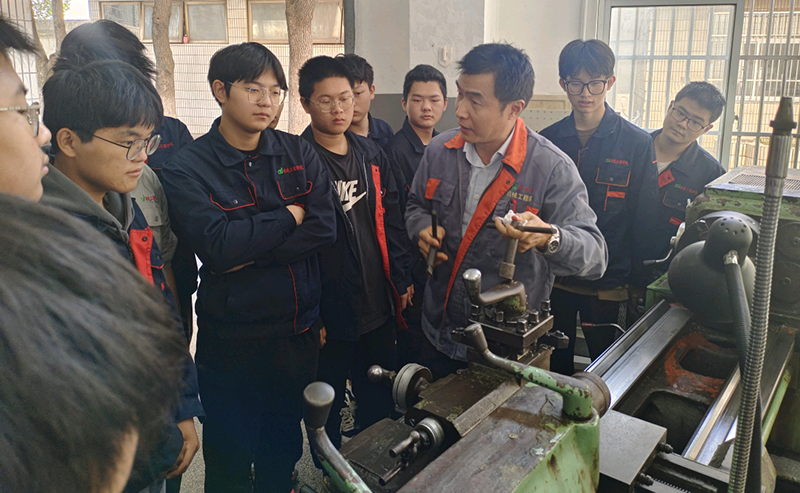 在车工实习中,车工教师教授学生车工方面的新知识,并对实操期间的相关操作进行详细的讲解教授。同时,也会跟同学们强调在进入车间时要严格遵守安全规则,强调必须穿实训服,不得在车间内追逐打闹,调节机床时不得佩戴首饰及手套,衣服不得带有挂绳,机床运作时不能靠近工件夹钳处等。课程结束时,老师会对学生们的实际操作进行相关考核。