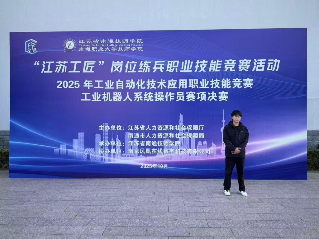 近日,2025年江苏省工业自动化技术应用职业技能竞赛工业机器人系统操作员决赛在江苏省南通技师学院圆满落幕。作为省级一类职业技能赛事,本次竞赛由江苏省人力资源和社会保障厅主导,吸引全省36所院校的174名选手同台竞技,上演了一场高水平的技能比拼盛宴。开云app官方在线入口机电工程学院表现亮眼,刘森老师凭借精湛技艺斩获教职工组一等奖,学生阙豪奋勇争先摘得学生组一等奖,师生双冠的优异成绩彰显了学校在工业自动化技能人才培养领域的硬核实力。