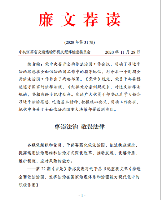 《江苏交通运输党风廉政建设》专刊 2025年第20期