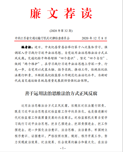 《江苏交通运输党风廉政建设》专刊 2025年第20期