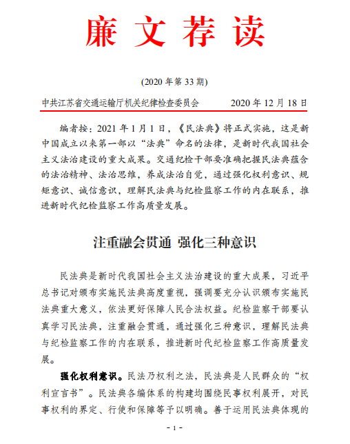 《江苏交通运输党风廉政建设》专刊 2025年第20期