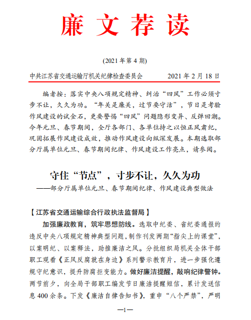 《江苏交通运输党风廉政建设》专刊 2025年第20期