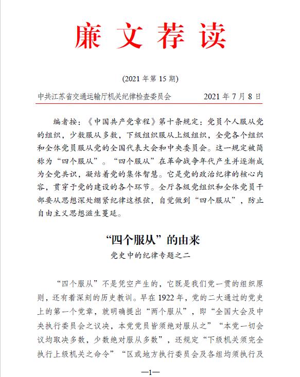 《江苏交通运输党风廉政建设》专刊 2025年第20期
