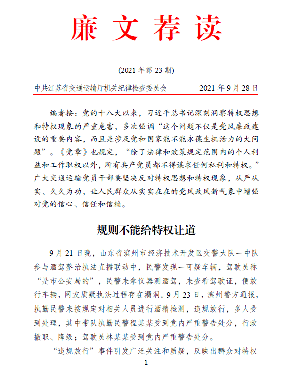 《江苏交通运输党风廉政建设》专刊 2025年第20期