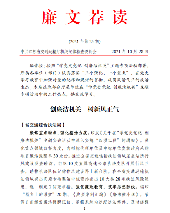 《江苏交通运输党风廉政建设》专刊 2025年第20期