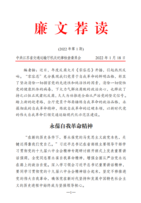 《江苏交通运输党风廉政建设》专刊 2025年第18期