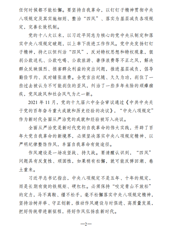 2022年廉文荐读第2期——持续加固中央八项规定堤坝 推动新时代作风建设高质量发展