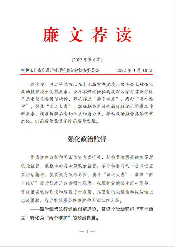 《江苏交通运输党风廉政建设》专刊 2025年第18期