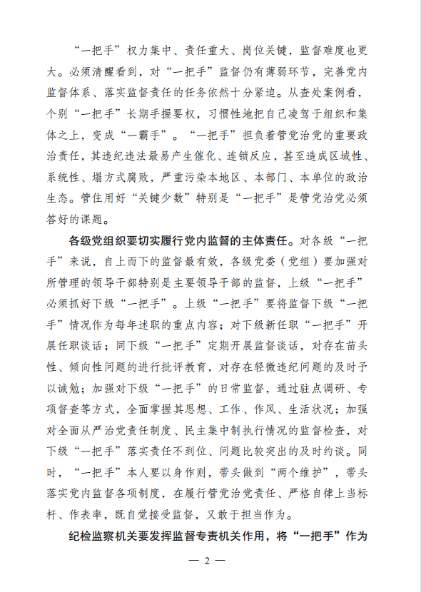 2022年廉文荐读第7期——紧盯“关键少数”加强对“一把手”监督