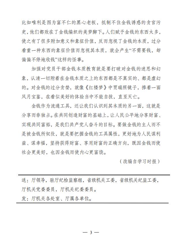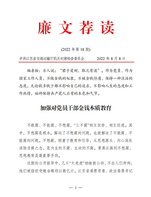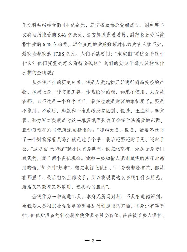 2022年廉文荐读第18期——加强对党员干部金钱本质教育
