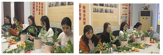 在第115个“三八”国际妇女节来临之际,为丰富女职工业余文化生活,提升艺术修养,展现新时代女性风采,机械工程学院党总支与塘头社区组织举办了一场别开生面的女职工阅读与插花活动。