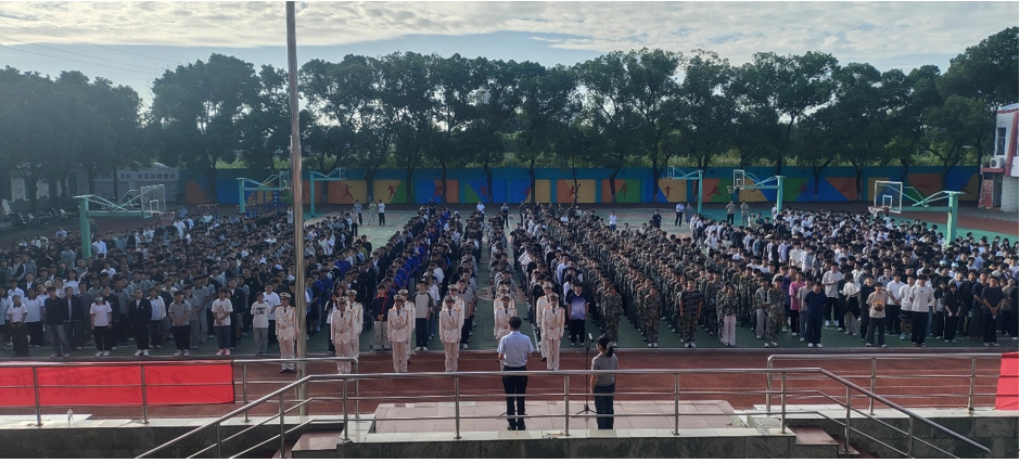 伴随着庄严的《义勇军进行曲》,鲜艳的五星红旗冉冉升起,全体师生齐唱国歌,向国旗行注目礼。校长耿兴华进行了国旗下讲话。他提出同学们要严守纪律规矩;筑牢安全防线;端正学习态度;淬炼良好品格,并呼吁全体学生抓紧时间学知识,掌握技能求生存。