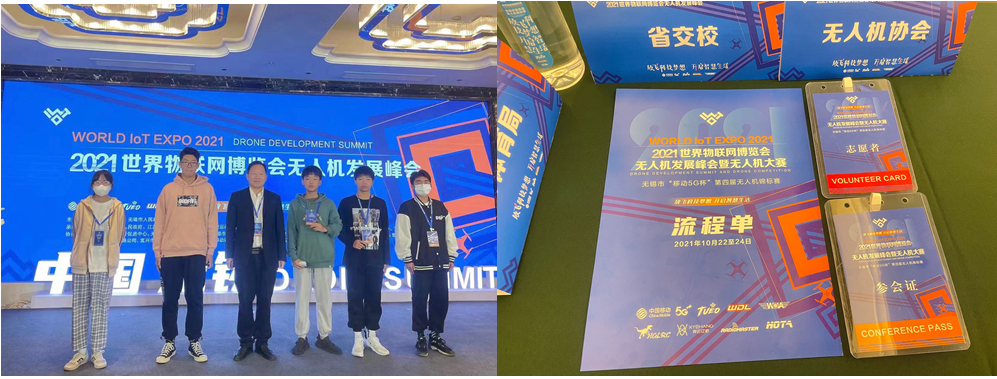 2021年世界物联网无人机发展峰会暨无人机大赛于10月22日至10月25日在无锡召开。汽车工程学院212521班丁豪、霍椿香等5名同学在比赛期间参与无人机开幕式及无人机峰会等志愿服务项目,为本次比赛提供了志愿服务。