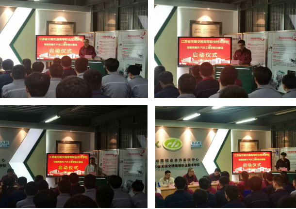 出席本次启动仪式的有汽车工程学院院长郑军武、新能源汽车教研室主任张俊、汽车实训中心副主任史敏智、全国技术能手顾晨逸老师以及全体裁判员和参赛选手。仪式共分三项议程,一是由选手代表、裁判员代表进行宣誓,二是由比赛技术组代表宣读比赛要求;三是由院部领导讲话并宣布比赛正式启动。