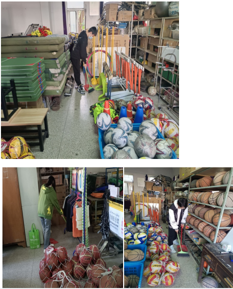 3月24日下午,根据班级活动方案,同学们到体育器材室进行打扫。在活动过程中,同学们个个精神饱满。同学们拿着扫把,拖把等打扫工具,女生负责扫地,擦桌子,男生负责拖地、整理运动器材。经过一个多小时的努力,体育器材室的面貌都焕然一新。