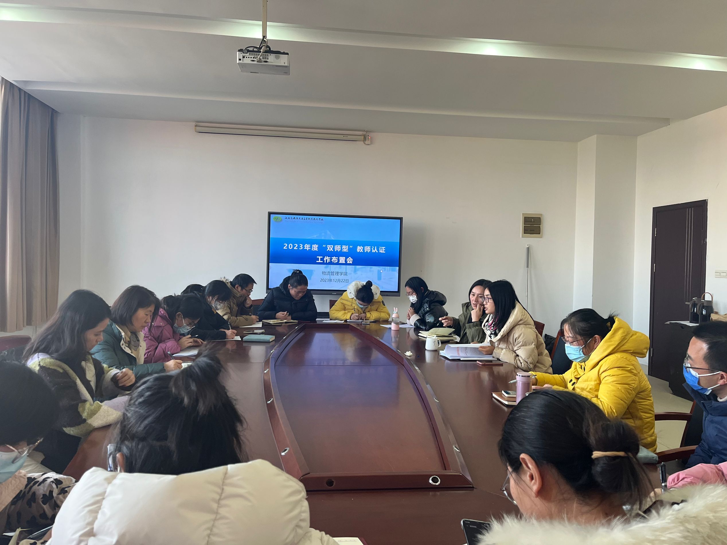12月22日下午,物流管理学院召开2023年度“双师型”教师认定工作布置会,学院全体教师参加此次会议,会议由盛姣院长主持。