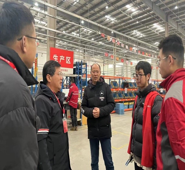 物流管理学院教师企业实践工作站授牌仪式于2023年12月29日上午在京东宇培物流园顺利举行。由学校副校长范次猛带队,物流管理学院相关负责同志一行4人参加;京东物流锡常区域人资负责人赵长河,校企合作经理刘鸿宇,人事部门主管段显玲,无印良品仓生产经理等4人出席。