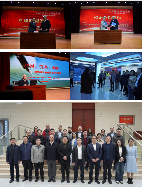 会上,学校校长、党委书记李进分别为两位产业教授颁发聘书。无锡物流与采购联合会党支部与物流管理学院党总支进行签约。学校分别与四家企业代表签署了校企合作协议。政行企校四方嘉宾代表共同为“职业素养培育实践基地、教师企业实践工作站”揭牌。