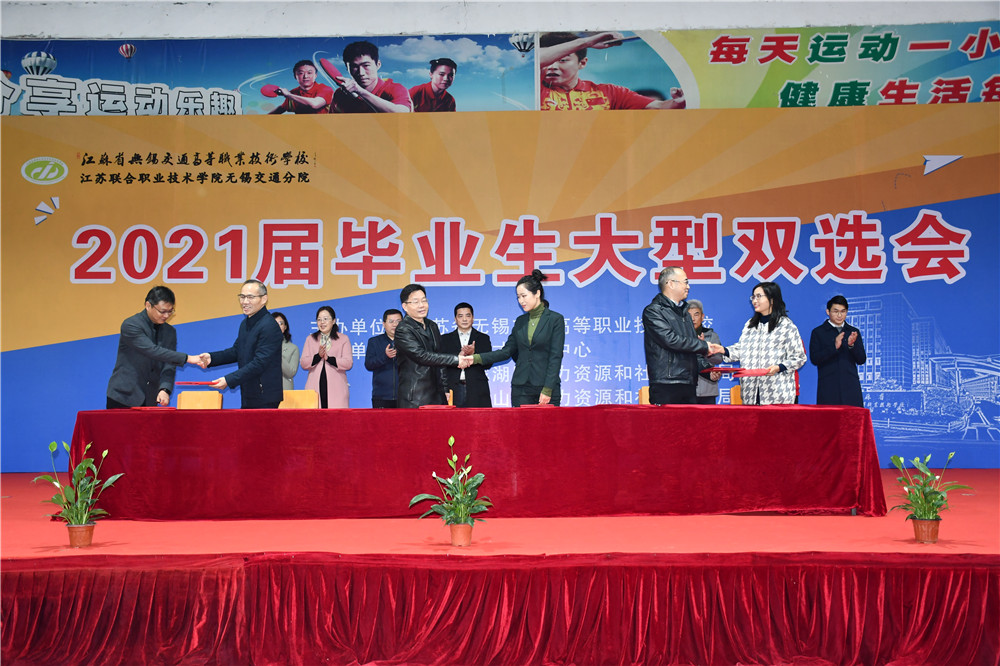 启动仪式上学校船舶工程学院、交通工程学院、物流管理学院分别与富士通将军中央空调(无锡有限公司)、江苏赛华建设监理有限公司、北京京东乾石科技有限公司等企业签订校企合作协议,同时举行学校与北京乾石科技有限公司的京东物流人才培养基地揭牌式。