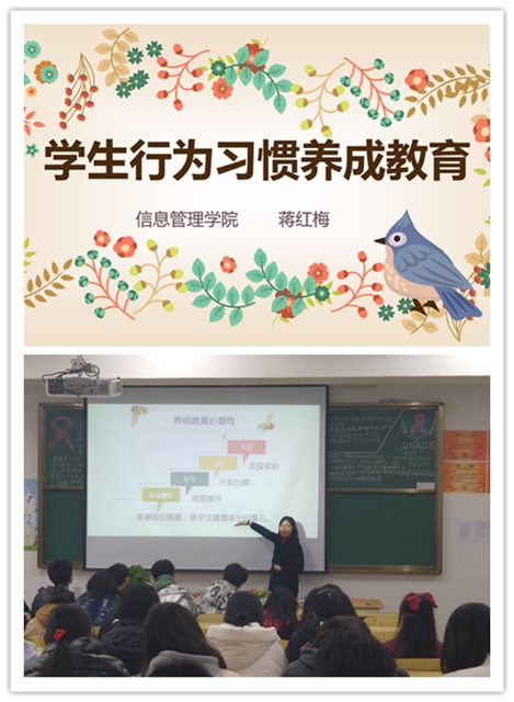 为培养学生良好行为习惯,共建优良校风,促使学生健康人格的发展。信息管理学院于2020年12月9日下午14点30分,在学校弘毅楼504教室开展“学生行为习惯养成主题”讲座。信息管理学院2020级新生代表一百余人参加此次讲座,学院副院长蒋红梅老师担任授课教师。