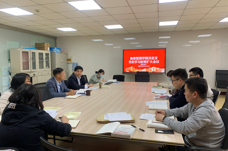 “欲知大道,必先为史”。今年是中国共产党百年华诞的重大时刻,也是“两个一百年”奋斗目标历史交汇的关键节点,开展党史学习教育正当其时十分必要。4月20日下午,信息管理学院党总支在党员活动室召开党史学习第三次扩大会议,学院全体教职工参会,会议由院长郑智飞主持。