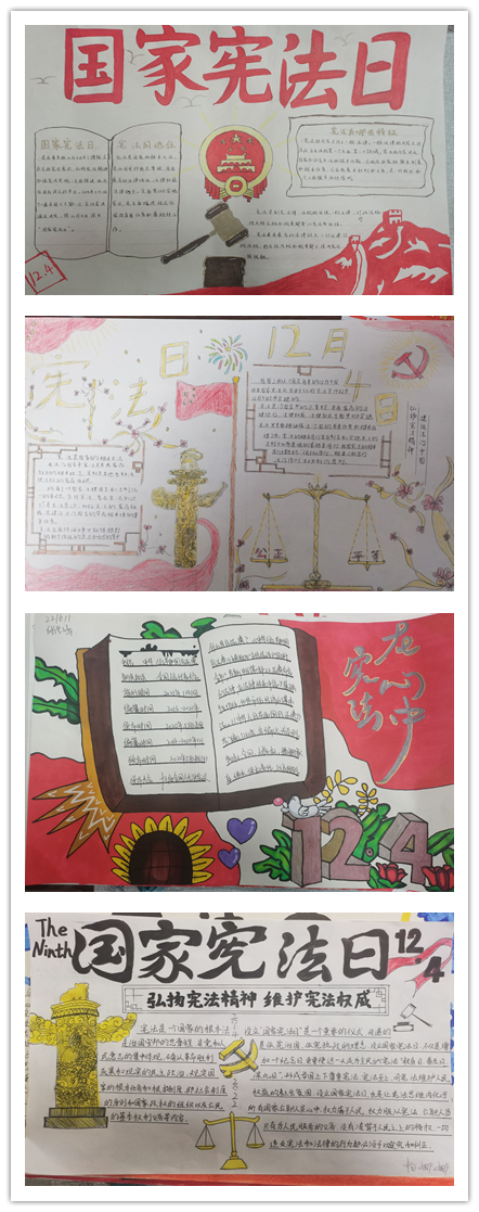 为弘扬宪法精神,树立宪法权威,提高学生尊崇宪法法律意识,营造尊法、学法、知法、懂法、守法、用法的浓厚氛围。2022年12月1日,信息管理学院组织学生绘制“国家宪法日”主题手抄报。
