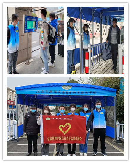 一周内,学院白鸽青年志愿者协会的志愿者们每天穿戴整齐,早早地来到校门口,认真履行职责,他们分散在两个校门口,负责维持校门口的秩序,引导同学们有序排队进校,督促同学们带好口罩,扫码进校,用灿烂的微笑、诚挚的服务精神为同学们营造了一个温馨和谐的校园环境。
