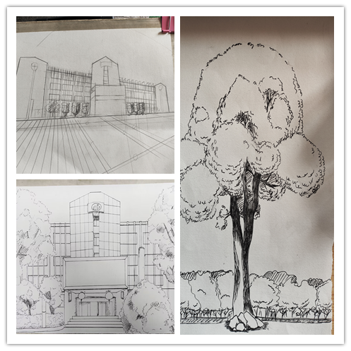 同学们分成了4个绘画小组,分别绘制正德楼、操场、咖啡厅等校园的建筑景观,他们用熟练的画笔描绘出学校校园春色。同学们积极性很高,在老师的指导下均完成了较为满意的素描作品。这是学院教学方式的一次尝试,是打破了传统的教室内部临摹绘画为主的教学方式,让同学们更能贴近大自然,通过实物的观察更好地提升学生的绘画水平,后续学院会尝试更多的教育方式和方法,不断地推陈出新,更好的提高学院的教学科研水平。