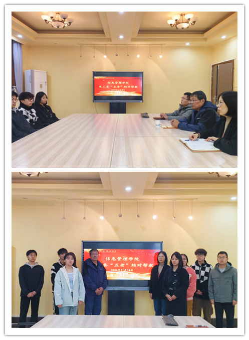 11月18日中午,信息管理学院关工委于学院会议室举行“五老”结对帮教仪式,离退休教师代表马耀良、学院党总支副书记蒋红梅,9名受助学生参加了帮教仪式,仪式由朱沛老师主持。
