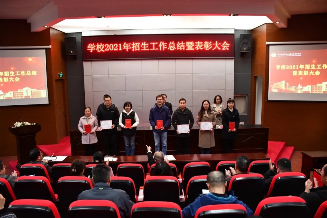 校领导对获奖集体和个人进行颁奖表彰。招生工作先进个人及先进集体代表发言,分享招生工作的经验和做法。