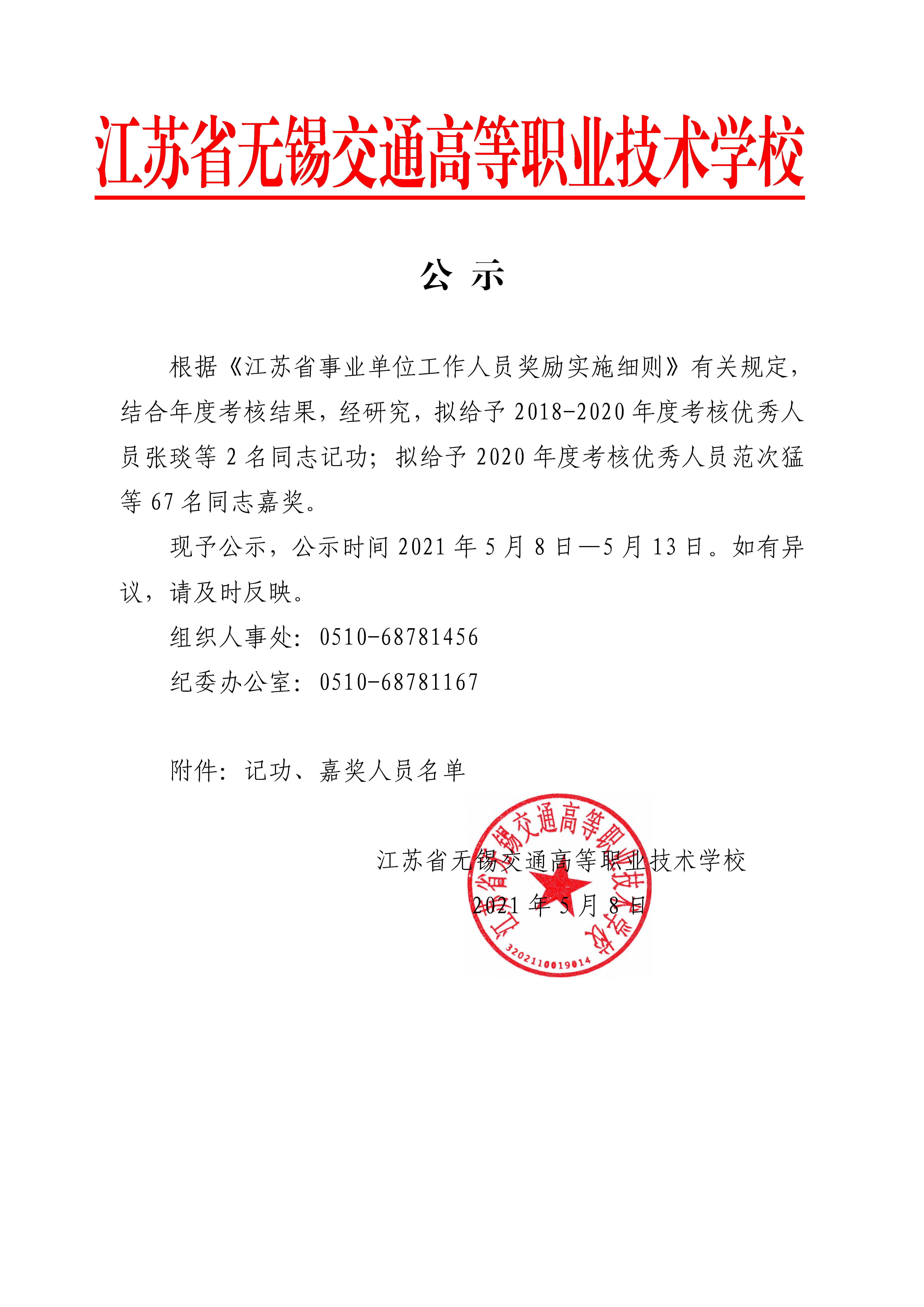 2021年拟给予记功和嘉奖奖励人员名单公示